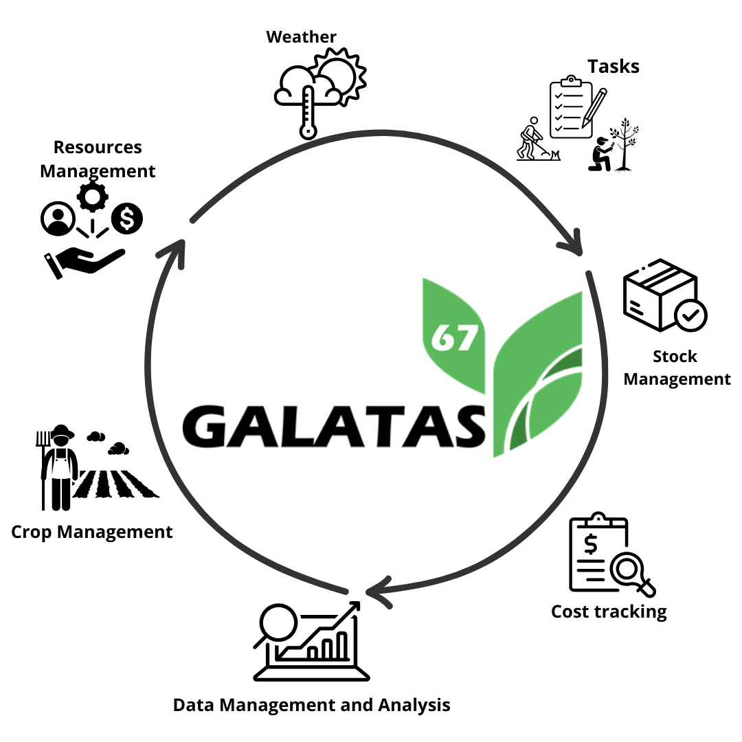 Galatas is a highly scalable platform built for modern agricultural operations of all sizes, from medium-sized farms to large-scale agro-industrial enterprises. Its modular structure allows you to manage crops, resources, and finances effectively, adapting to your specific needs.